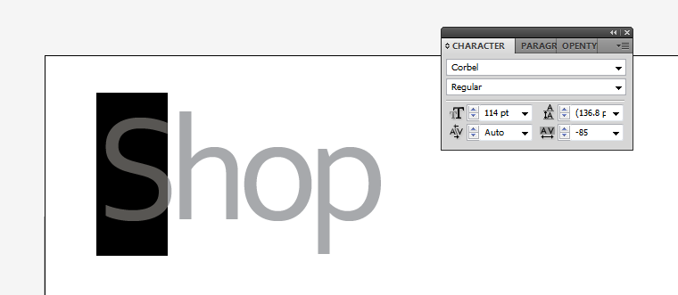 Example: I type out the word “Shop” and I don’t like the spacing between the letters. Whether I want more space between the letters or less it is the same. I need to adjust the space and I want it to be the same throughout.